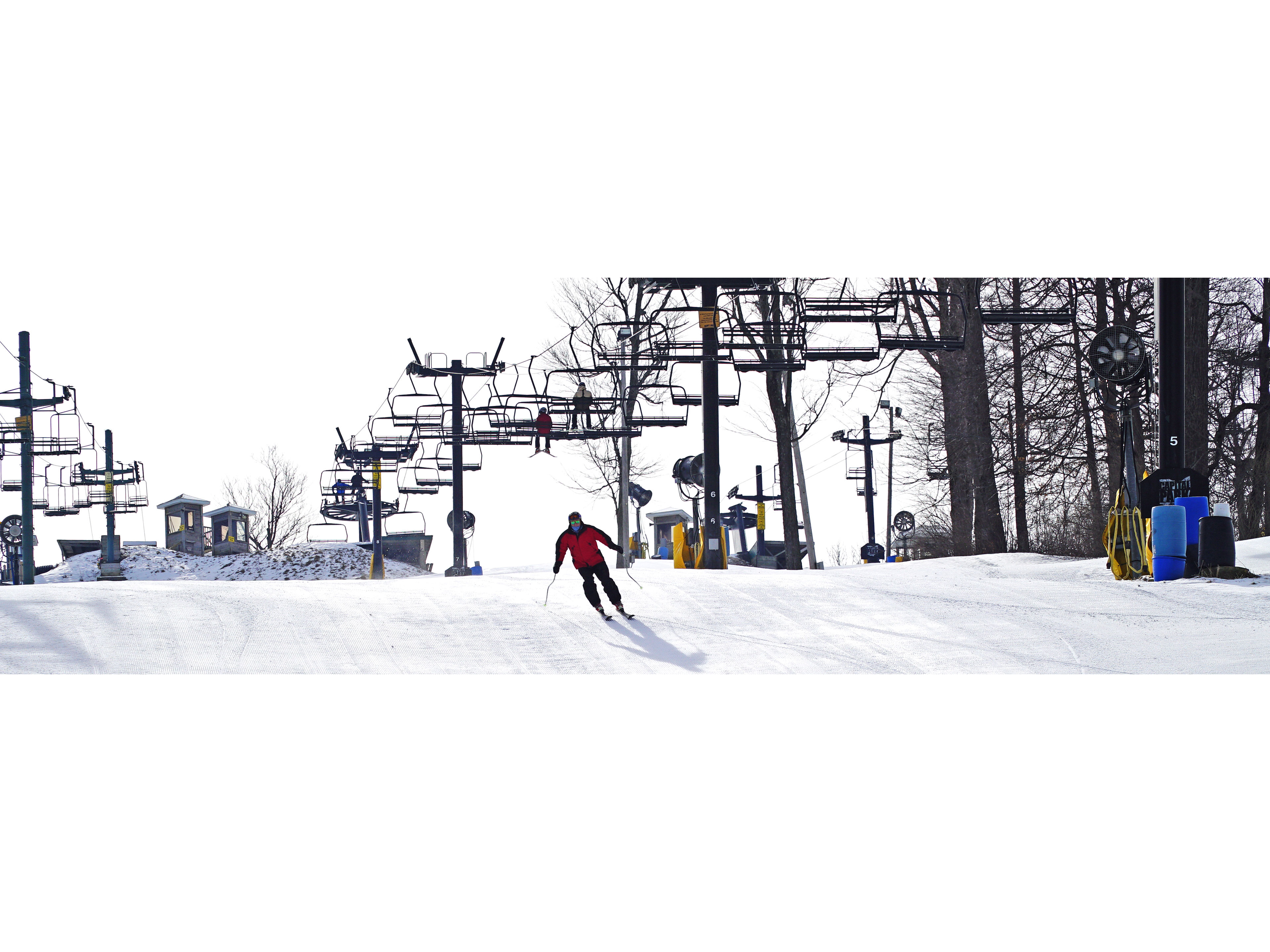 - Do not wear loose or hanging items that can get wrapped around the chairlift poles.